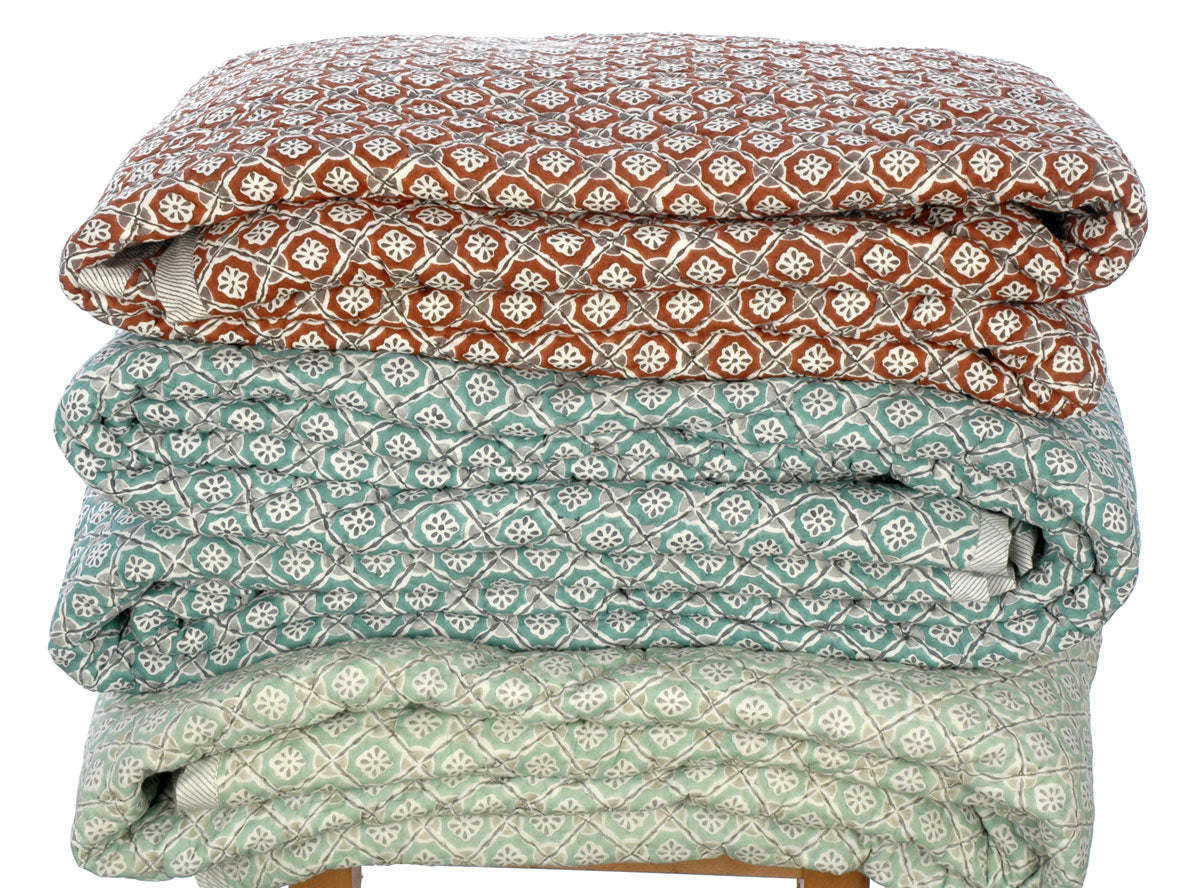 Traditional Hand Stamped Pure Cotton Quilts and cushions