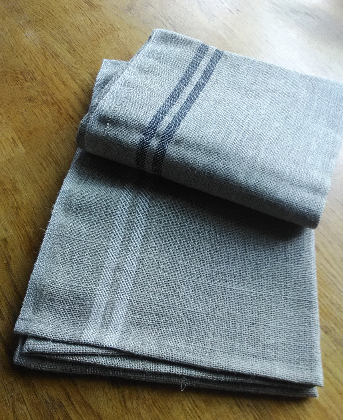 - 100% linen 1 black stripe 1 white stripe also available in red and blue stripe