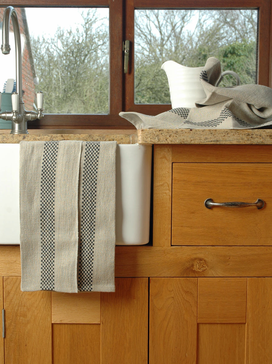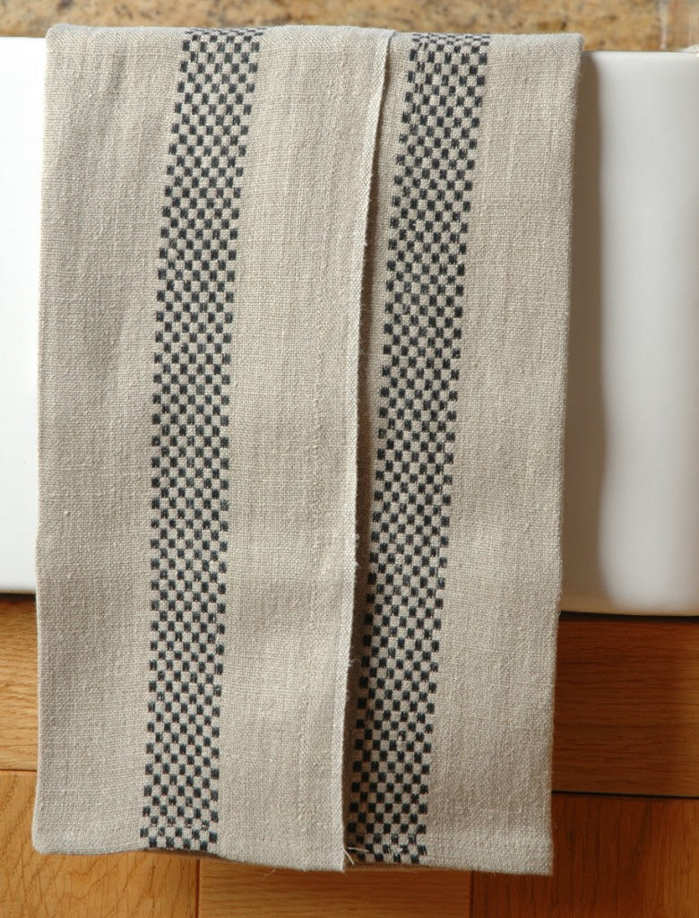 Heavyweight Linen Tea Towel with Checked Stripe Detail 75x44cm