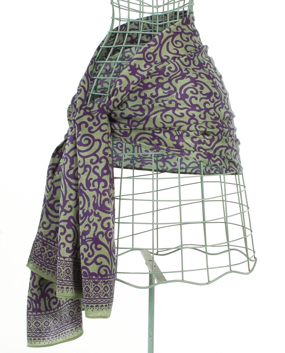 Pure Silk Purple Peppermint Java Batik Short Sarong/Scarf 180x50cm