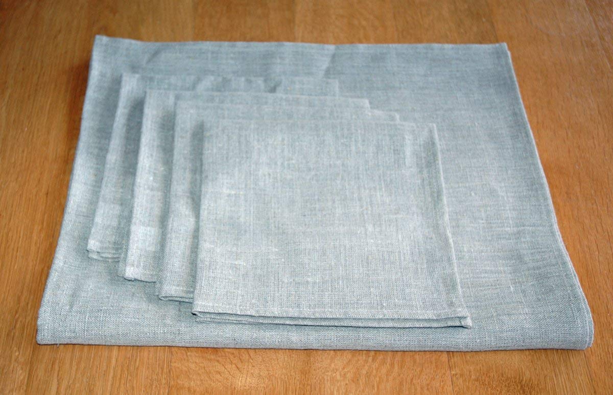 Country Style Natural Linen Table Runner with 4 Matching Napkins