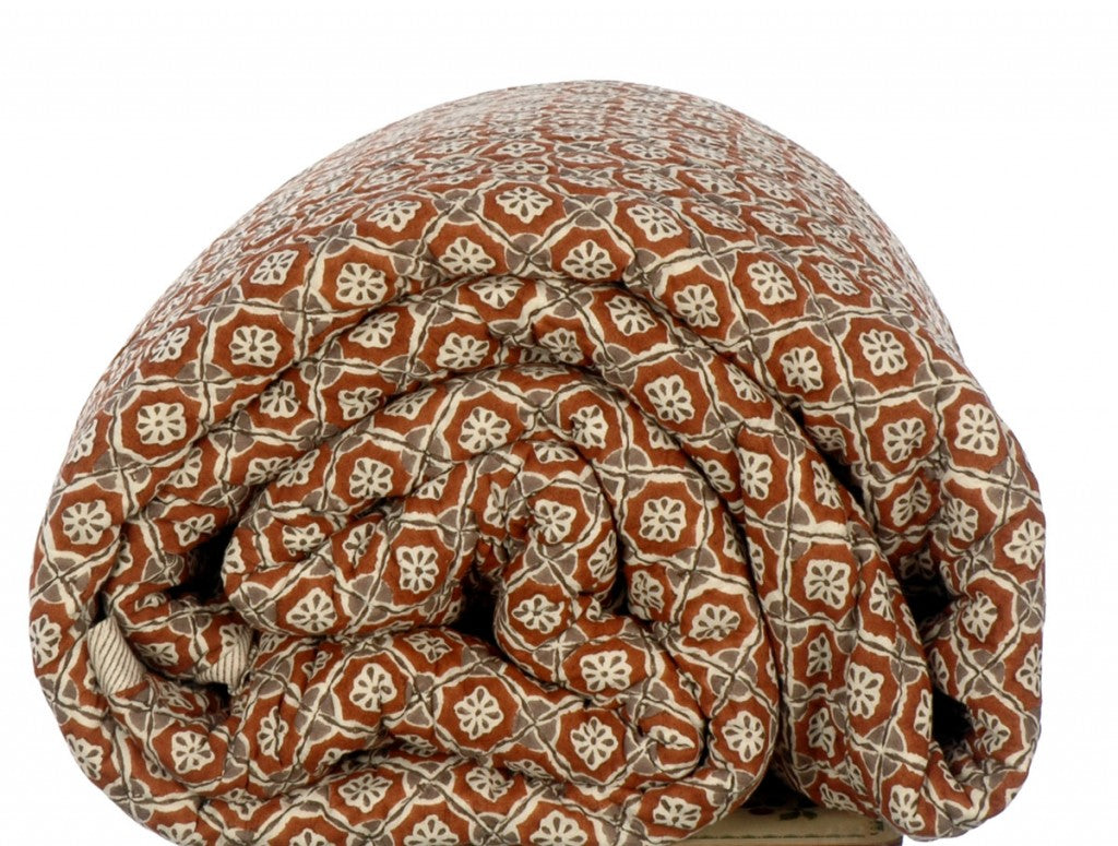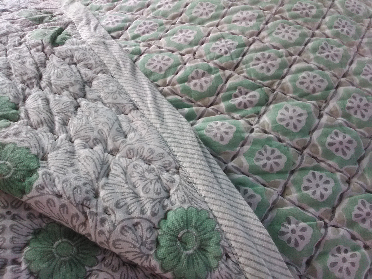 - Reversible hand block printed cotton quilt bedcover and throw in king size