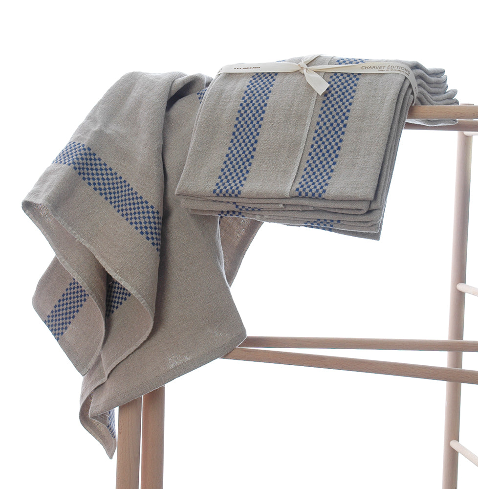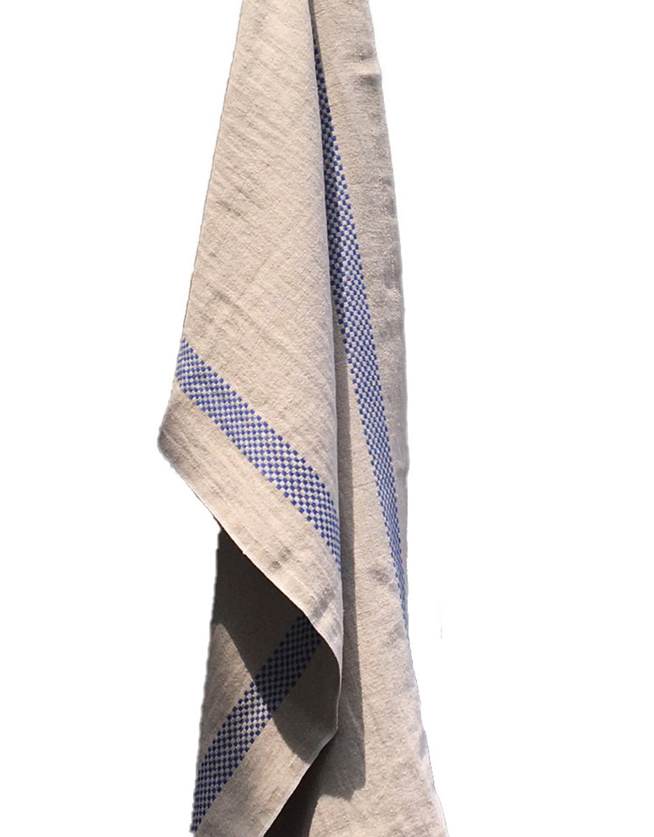 Linen Tea Towel with Checked Stripe Detail 75x44cm