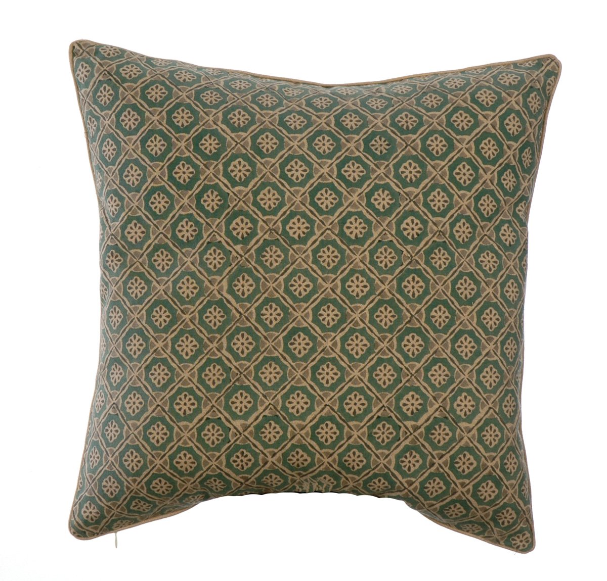 - Hand block printed cotton cushion with invisible zip opening 50x50cm