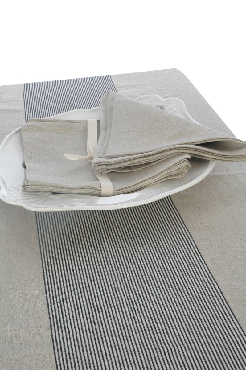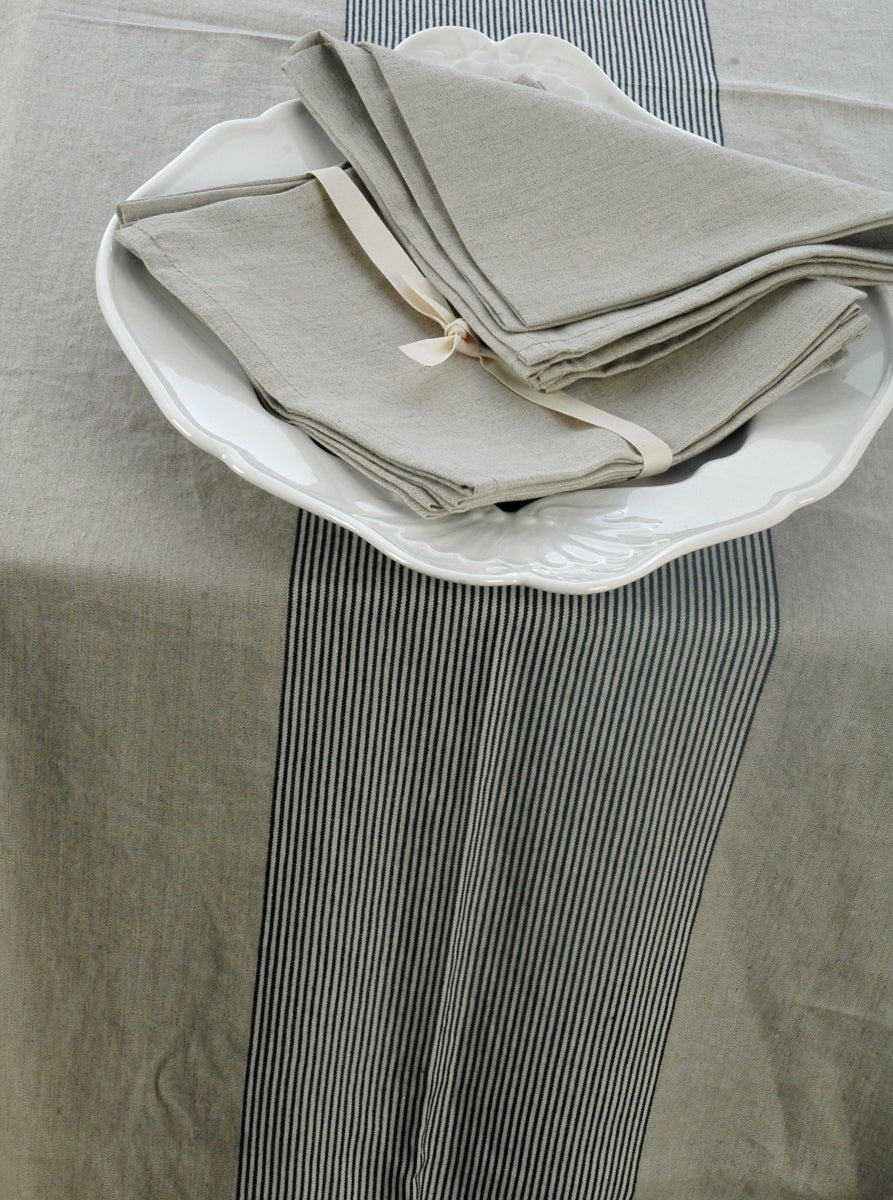 French Linen Tablecloth with Black Ticking Detail 170x275cm