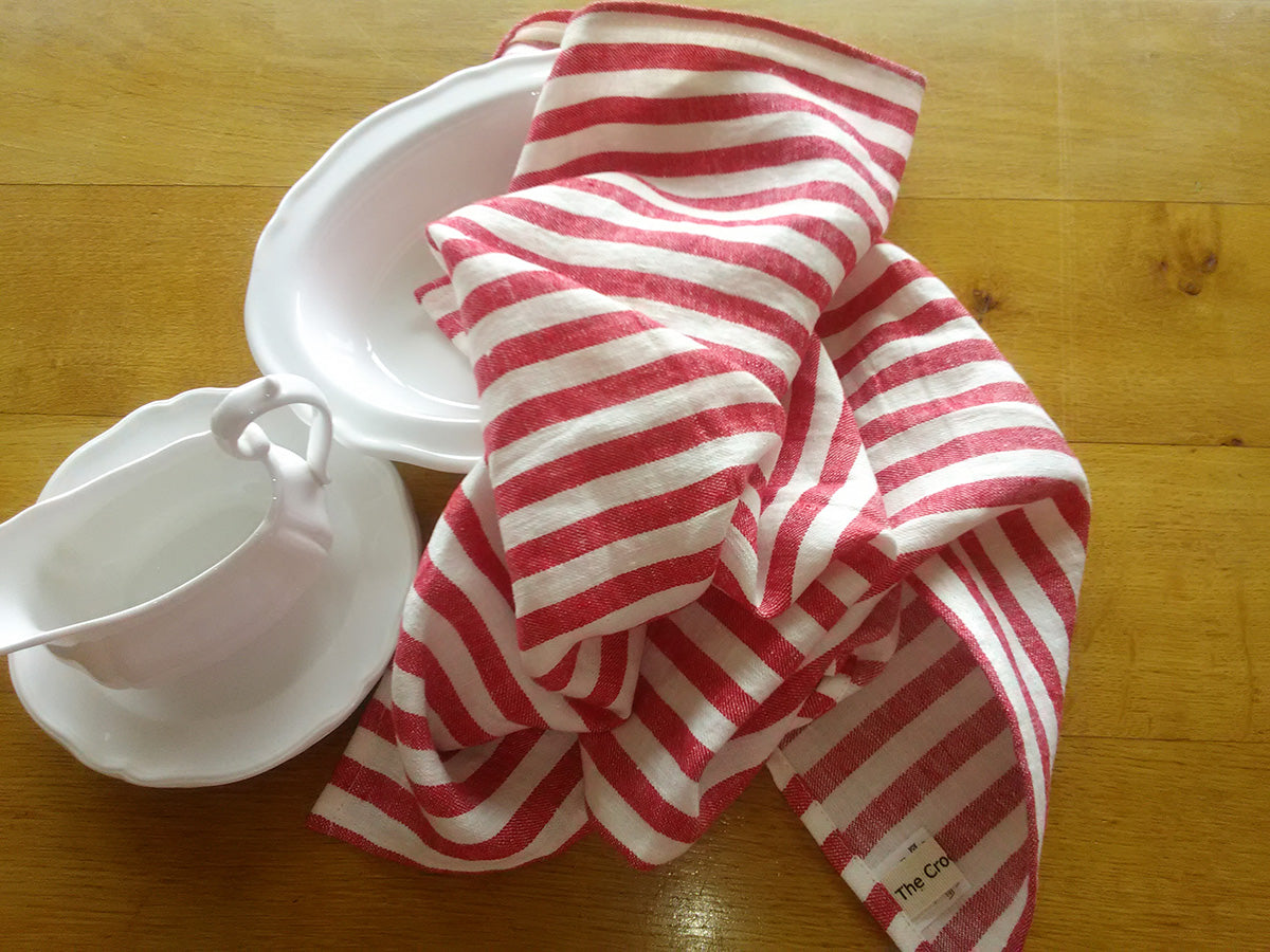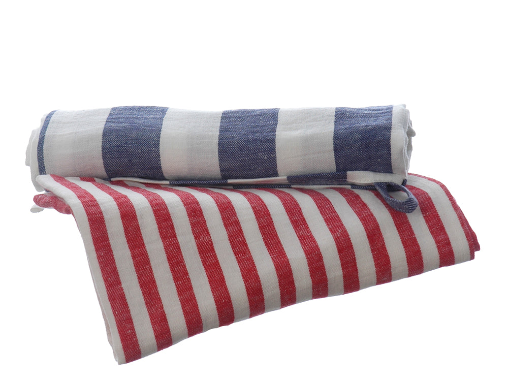 Set of 2 Linen Tea Towels in Red and Blue Stripes With Useful Hanging Loops