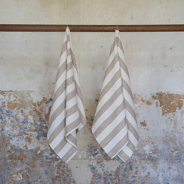Striped Pure Linen Large Towel with Hanging Loop 130x60cm