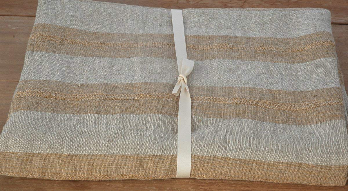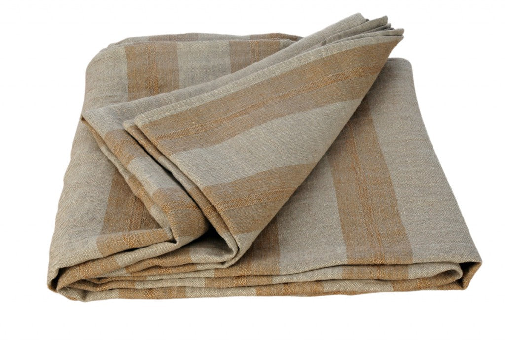 Large Pure Linen Gold Stripe Tablecloth in 3 sizes